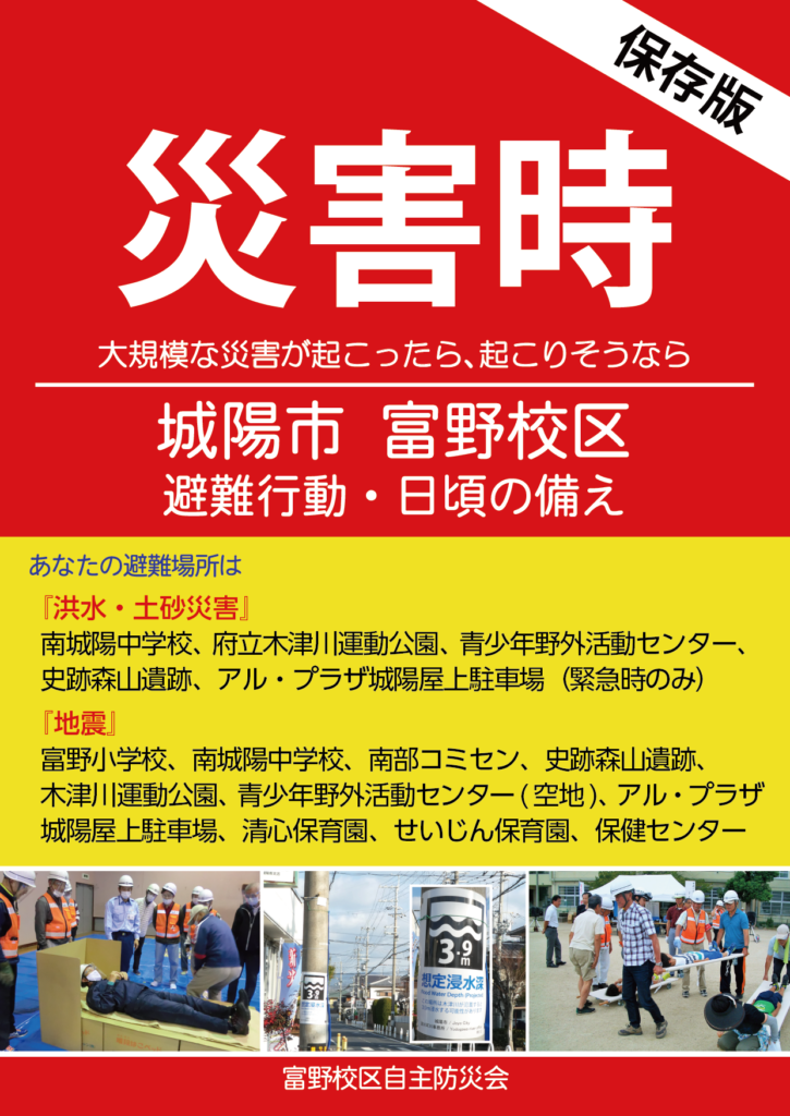 京都府城陽市内の富野校区自主防災会からご依頼頂き、災害時避難ブックを作成しました。