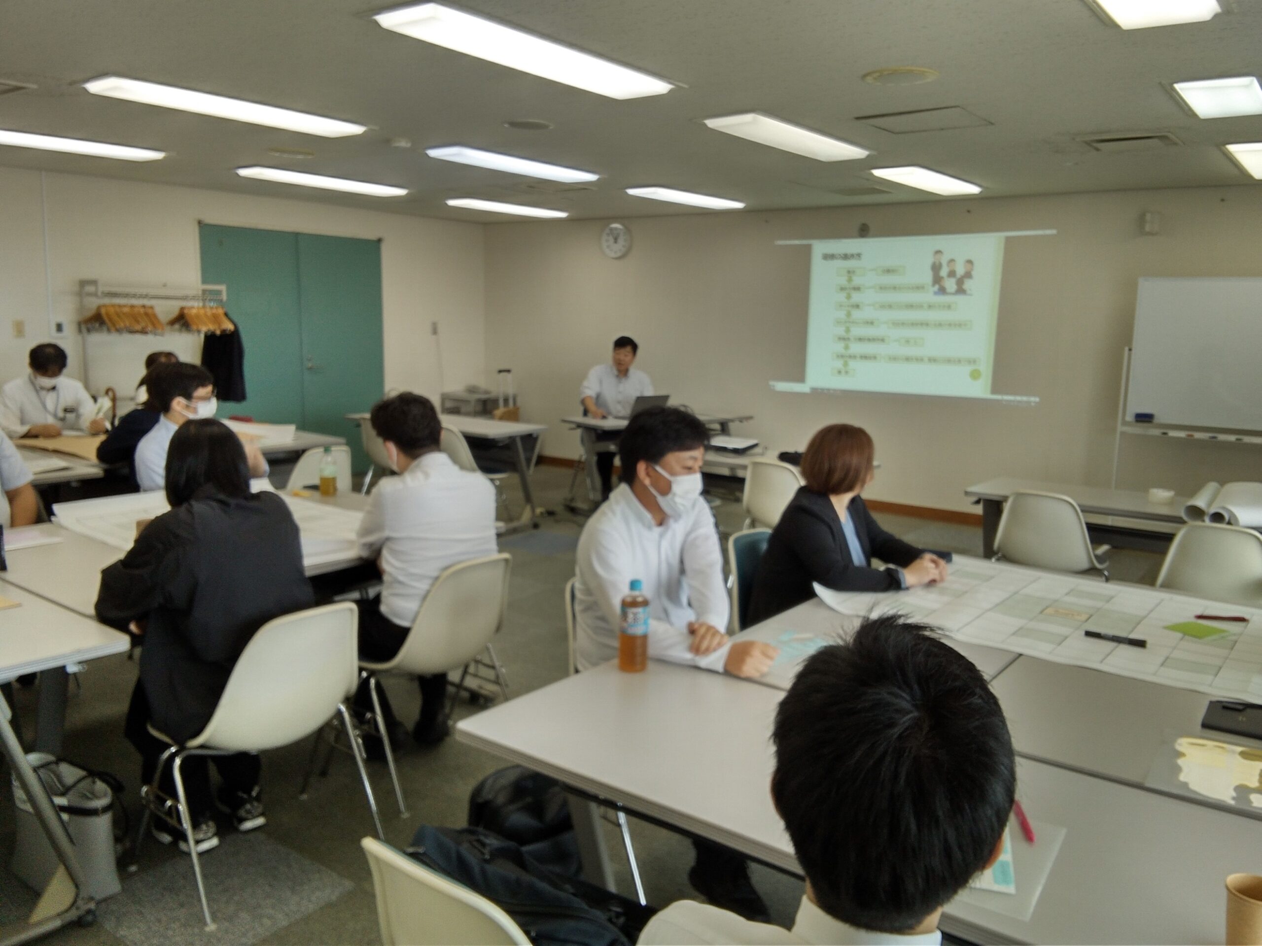研修会は、2024年6月21日、大阪市此花区「ホテルロッジ舞洲」にて開催し、管理監督者12名とその候補者3名が参加しました。概要は、「チーム力の向上」を目的としたマンダラチャートを作成し、達成のために必要な行動計画を策定しました。