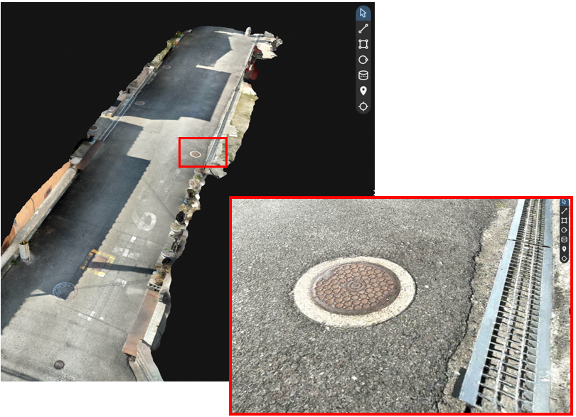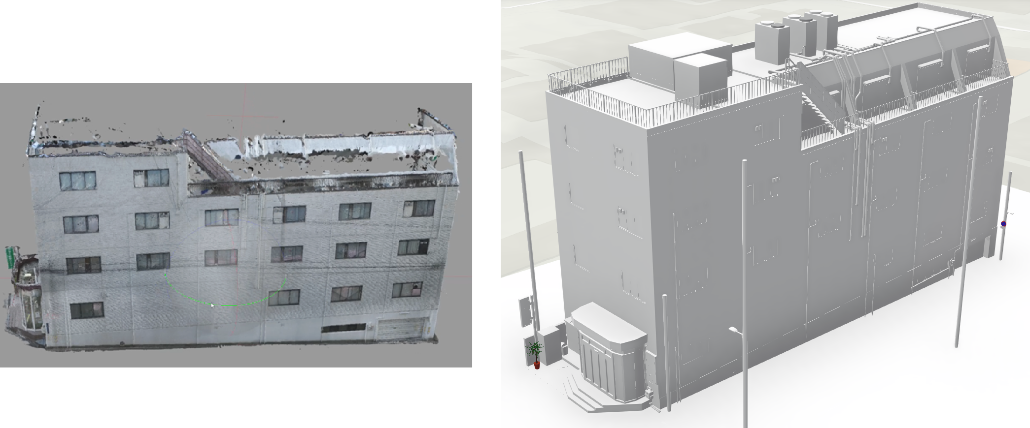 表層データ(DSM)と現地写真を基に3Dモデルを作成します。