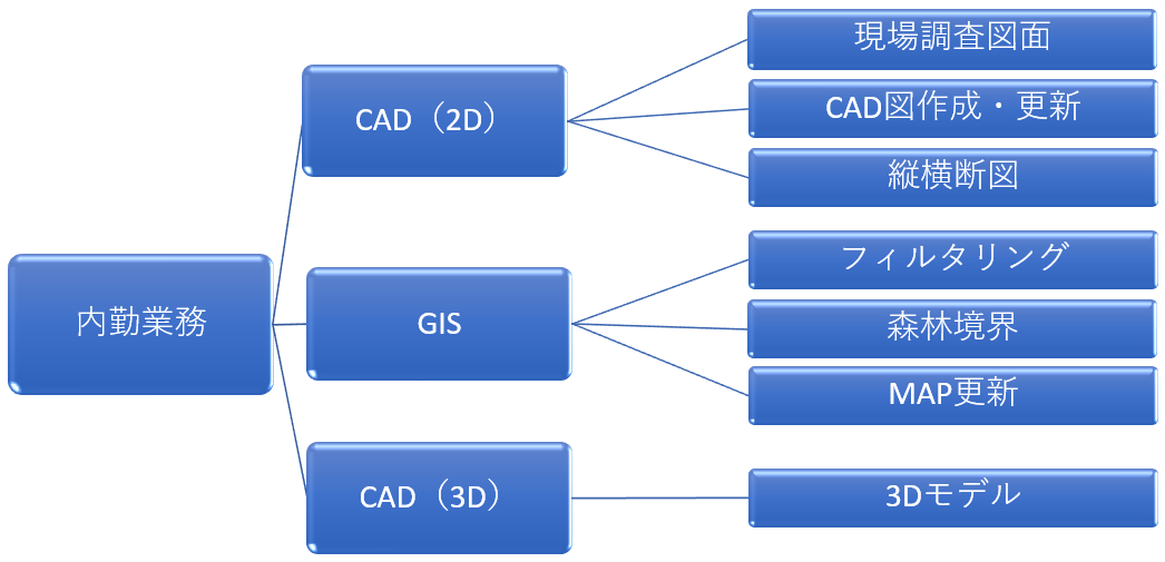 設計技術チームの業務は、主に「現場業務」と「内勤業務」に区分されます。