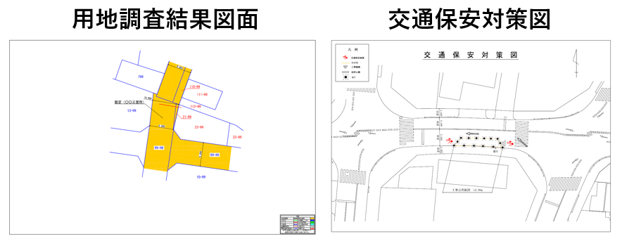 現地で測量した結果や行政へ調査を行った結果を基に、CADで作図を行います。